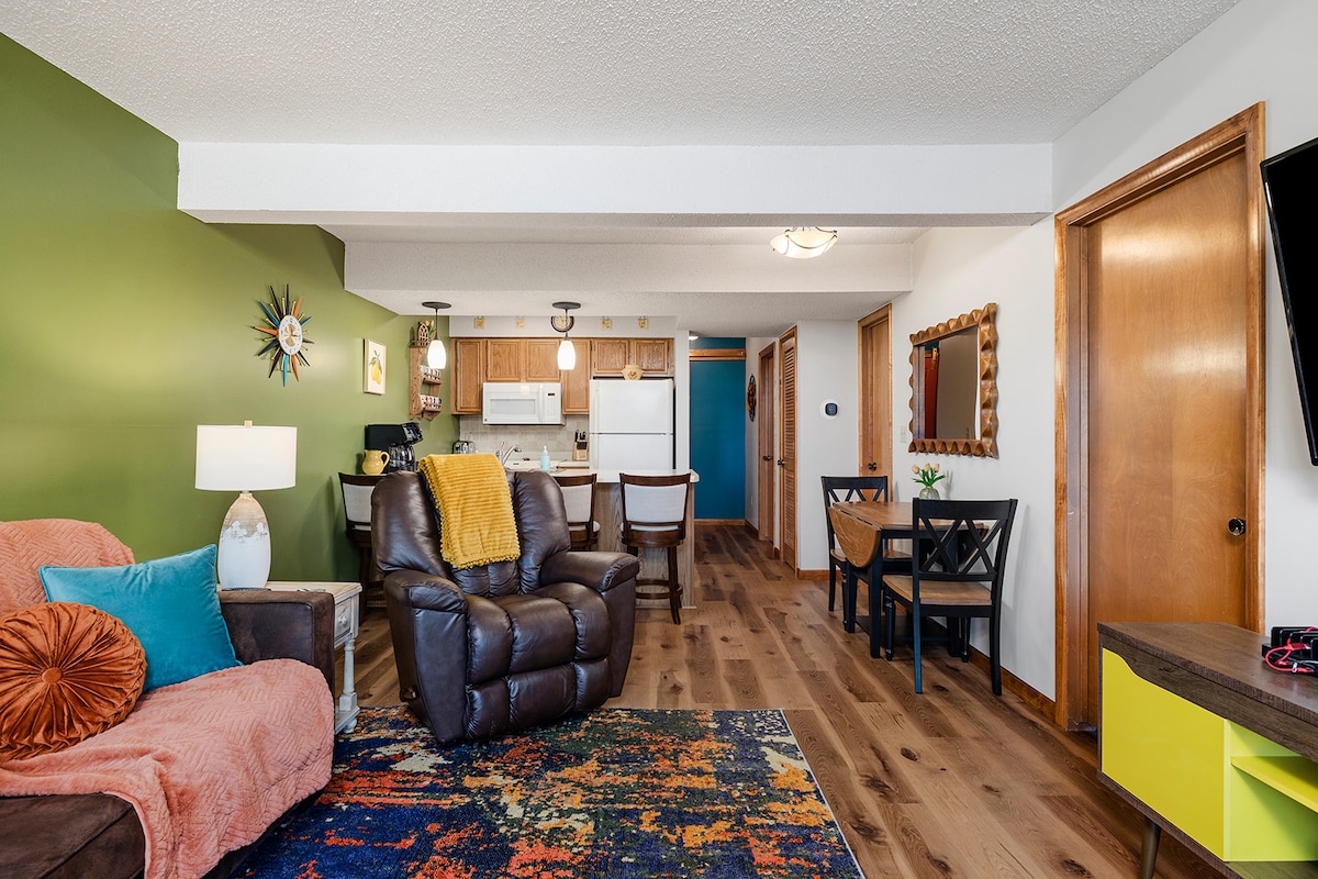 Pack your bags and get ready for a groovy good time. This retro-inspired condo is the perfect place to kick back, relax, and make memories with the whole family. Think bold colors, throwback style, and a cozy vibe that feels like a nostalgic getaway but with all the modern comforts you need.